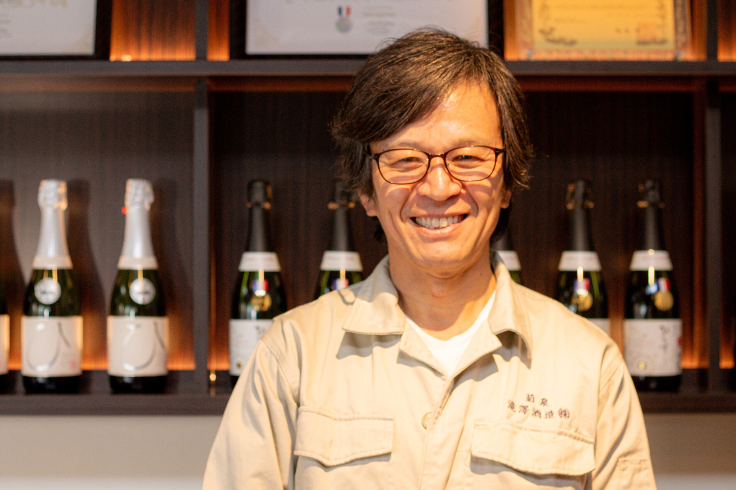 ――スパークリングだけでなく、吟醸や純米酒含めて、滝澤酒造のお酒の特徴をおしえてください。 「一言で言うと名脇役っていうんでしょうかね。お酒自体が主張しないんですけれども、主役である料理を上手に引き立てるお酒かなと思います。料理がより美味しくなるためのお酒って言うんでしょうかね。具体的にどういう味わいかというと、香りはそんなに強いわけではなくて、ほどよい香りがあって、味わいもすっきりしていて切れがあるというんでしょうかね。これがスパークリング以外の菊泉の特徴で、スパークリングの場合は真逆にあるかなと思います。もう完全にお酒が主役です。味わいとしてもワインで言うところのフルボディタイプ。甘味と酸味がしっかりあって、味も濃くて、料理も洋風なものにも合わせやすく、単体で美味しくのめるお酒です。」